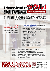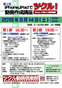 「iPhone、iPadでツクル!動画作成講座」(2015年2月14日13:00 - 15:00)に、講師として参加することになりました。