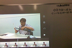 以下は講座中に撮影した動画をプロジェクターで投影して、ピクチャーインピクチャーの説明をしています。